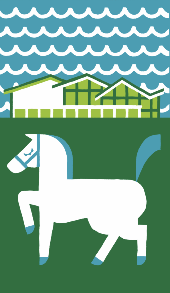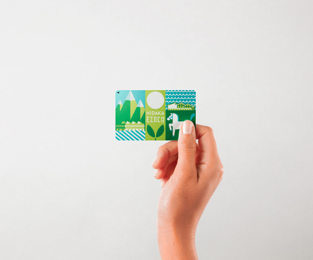 日高町のご当地EZOCA「HIDAKA EZOCA」のカードデザインを制作しました。本カードは、利用額の一部が日高町へ寄付される仕組みとなっており、地域循環を生み出す役割を担っています。日高町は「山日高」と「海日高」に分かれた飛地という特徴的な地理構造を持つ町です。その個性を一枚のカードの中で表現するため、両エリアの風景や象徴的なモチーフをテキスタイル調のイラストとして構成しました。山日高には日高山脈、道の駅樹海ロードひだか、沙流川を。海日高には富浜、とみくる、そして日高を象徴する馬を配置し、町らしさをやわらかく親しみやすいタッチで描いています。さらに中央には、ポイントの一部が“新芽”へと変化する様子を象徴的に表現。太陽へ向かって成長する姿に、町の未来への循環と発展の願いを込めました。地域の風景と想いを一体化させた、日高町ならではのカードデザインです。